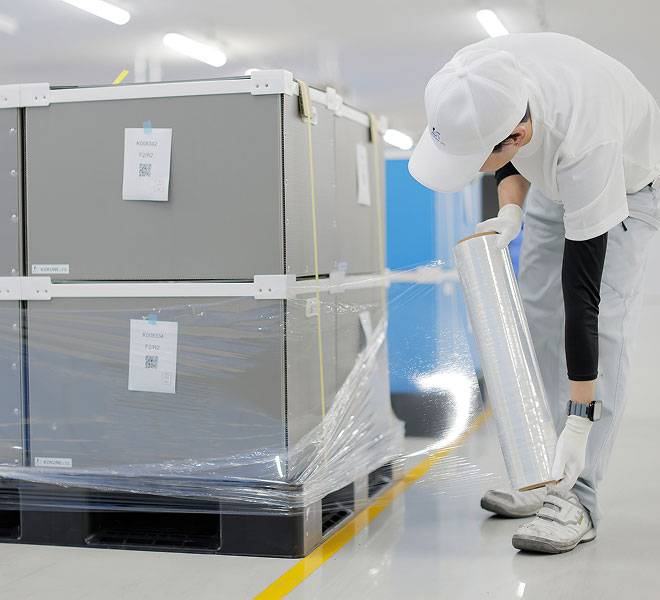 入荷した部品、製品の保管や生産工場への移動、お客様の状況を注視し在庫が適正になるような調整、お客様への出荷準備などを行います。