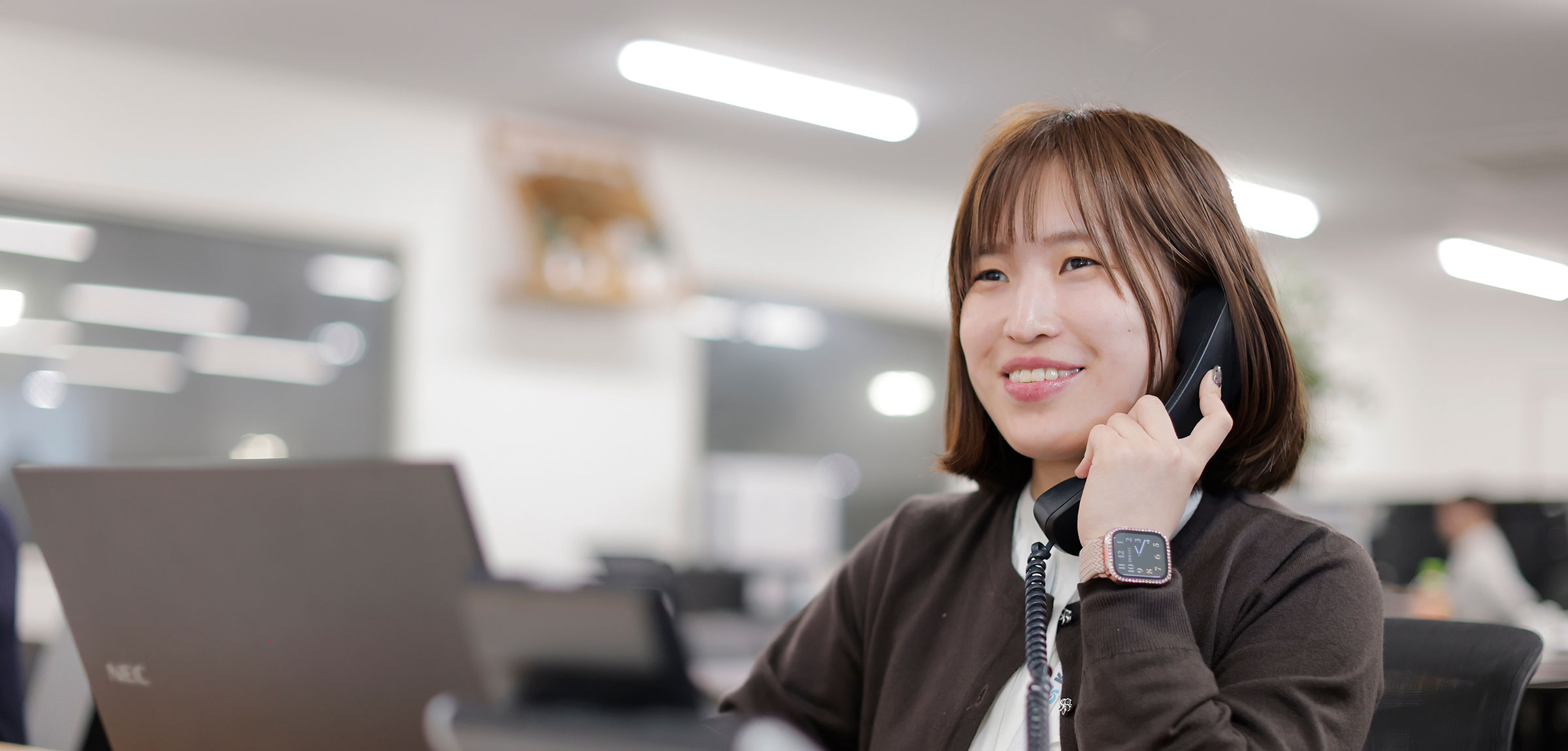 福利厚生施策として、クーポン提携店のPRや企画立案、新入社員歓迎会・忘年会など社内行事の準備や司会を務めることもあります。さらに、来客対応や電話応対など、社内外からの信頼につながる大切な日常業務も担当しています。