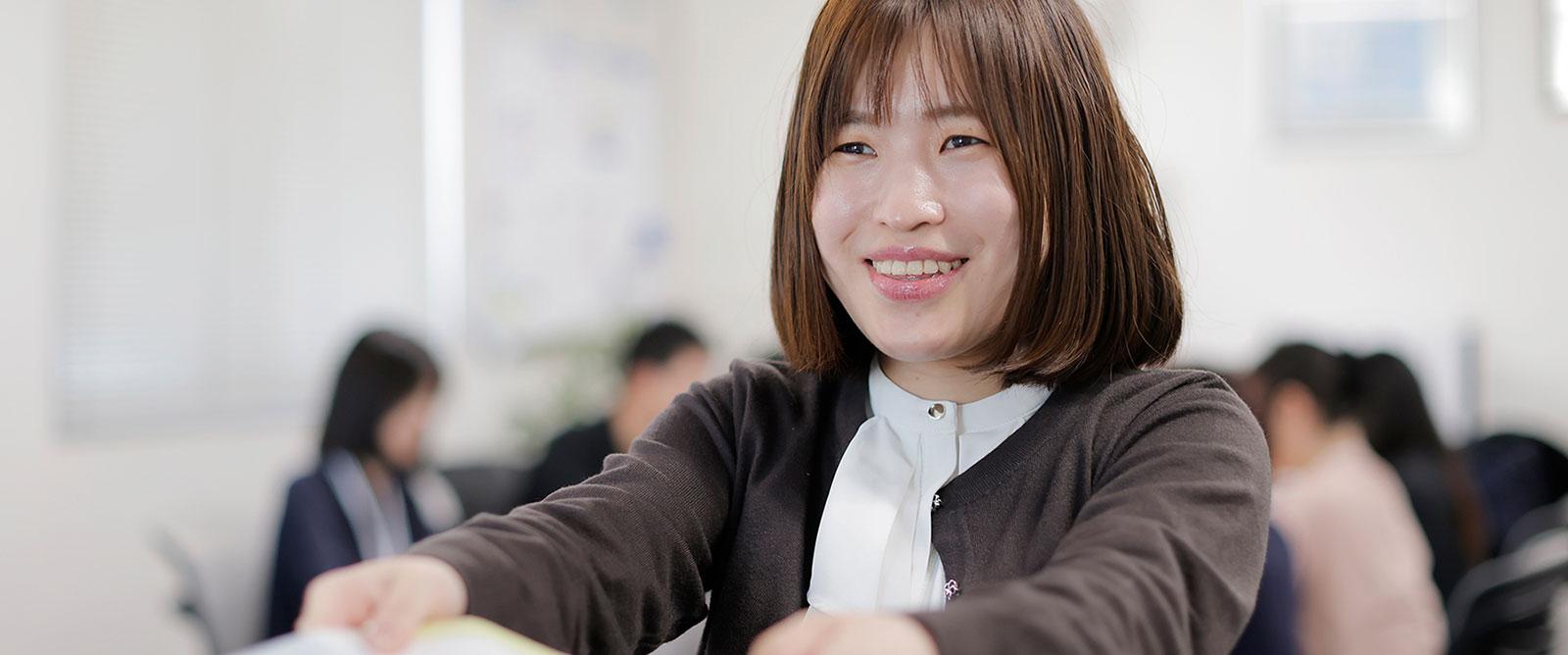 【PROFILE】 生活マネジメント学科で、ファイナンシャルプランナーや簿記など幅広い学びを経験しました。学業と並行して続けていたボイストレーニング教室でのアルバイトは約3年間。愛知県で事務職を希望していた時、大学の企業説明会でコクネ製作と出会い、取締役の宮島をはじめ社員の皆さんの温かさに惹かれて入社を決意しました。入社後は1年間の経理業務を経て、現在は総務グループで 採用・広報・庶務など幅広い業務 に携わっています。