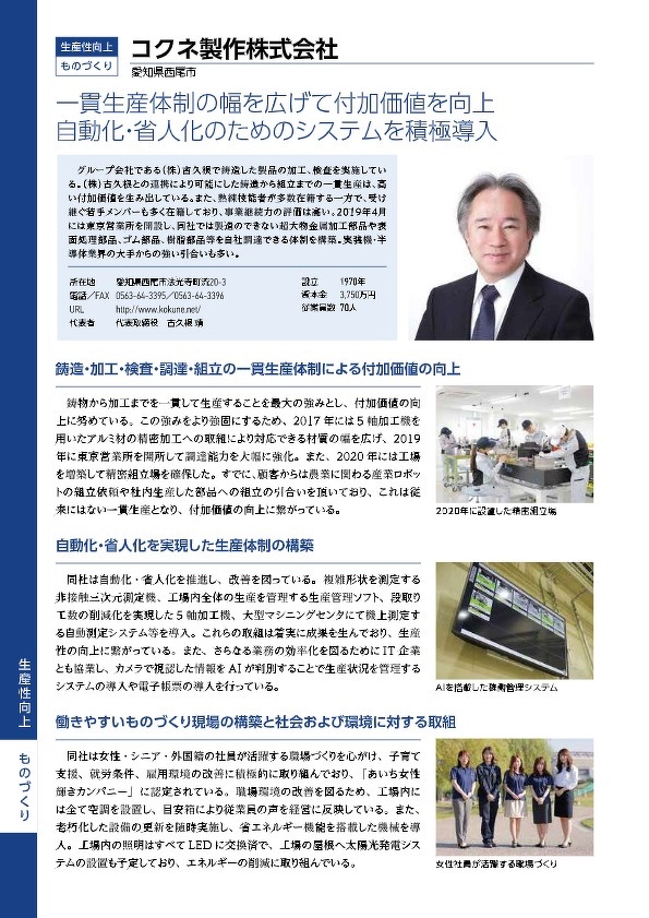 コクネ製作(株)の取組が、中小企業庁HPの「はばたく中小企業・小規模事業者300社/はばたく商店街30選」の2021年生産性向上のページに掲載されました! 是非ご覧ください。