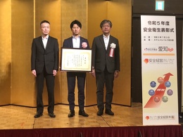 2023/07/03 令和5年度安全衛生表彰式に参加致しました 令和5年度『安全衛生に係る優良事業場、団体又は功労者に対する厚生労働大臣・愛知労働局長表彰』表彰式に参加致しました。 愛知労働局長奨励賞(地域の中で、安全衛生に関する水準が良好で改善のための取組が他の模範と認められる事業場又は企業に授与されるもの)の、15事業所中の1つに選ばれ、表彰をして頂きました! 今後も、安全第一で業務に取り組んで参りますので、よろしくお願いいたします。