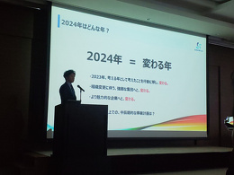 冒頭の社長挨拶では、「2024年は変わる年」とのお言葉がありました。2023年に考えたこと、準備してきたことを実行し、より魅力的な企業へと変わっていくよう従業員一同努めてまいります。