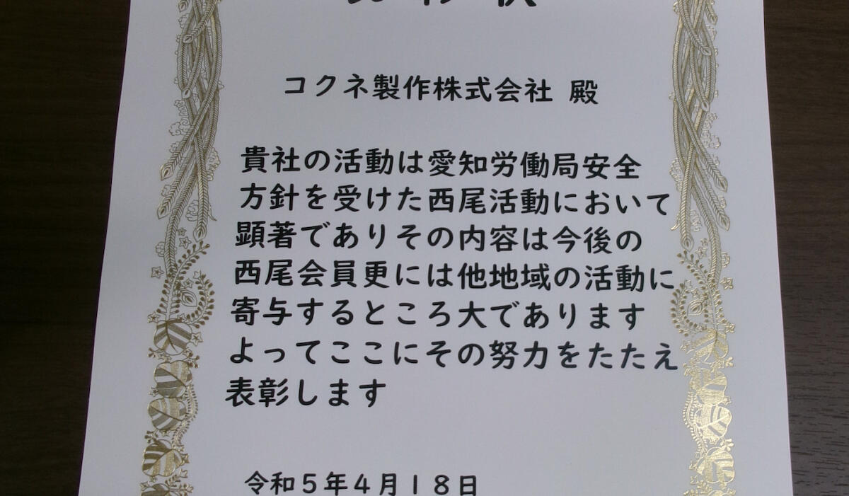 先日、西尾労働基準協会様の、『危なさと向き合おう』特別表彰式に出席させていただきました。 今後も安全第一で業務に取り組んでまいりますので、よろしくお願いいたします。