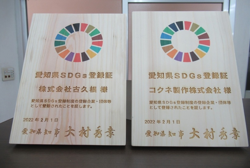 (株)古久根、コクネ製作(株)両社が『愛知県SDGs登録制度』に登録されました