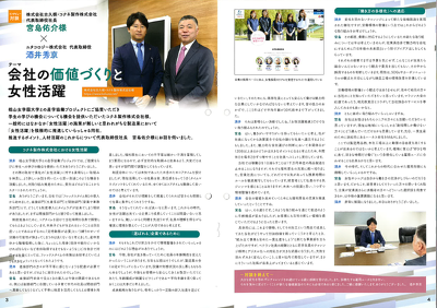 2024/01/12 ユタコロジー株式会社様の社内報に掲載されました ユタコロジー株式会社様の社内報『Continue』に、ユタコロジー代表取締役 酒井秀京様×弊社社長の対談コーナー『テーマ:会社の価値づくりと女性活躍』が掲載されました。フレックスタイム制の導入や年間休日の増加等、福利厚生の充実であったり、女性活躍や働き方の多様化への対応について対談した内容が掲載されています。