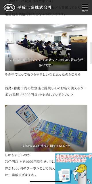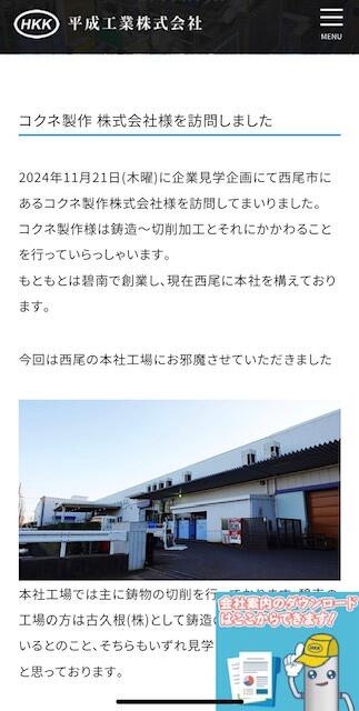 2025/02/13 平成工業株式会社様のHPに掲載されました 平成工業株式会社ホームページにて弊社の紹介をしていただいております。 平均年齢や福利厚生の事など色々書いてくださっていますので、下記リンクより是非ご覧ください! リンクテキスト