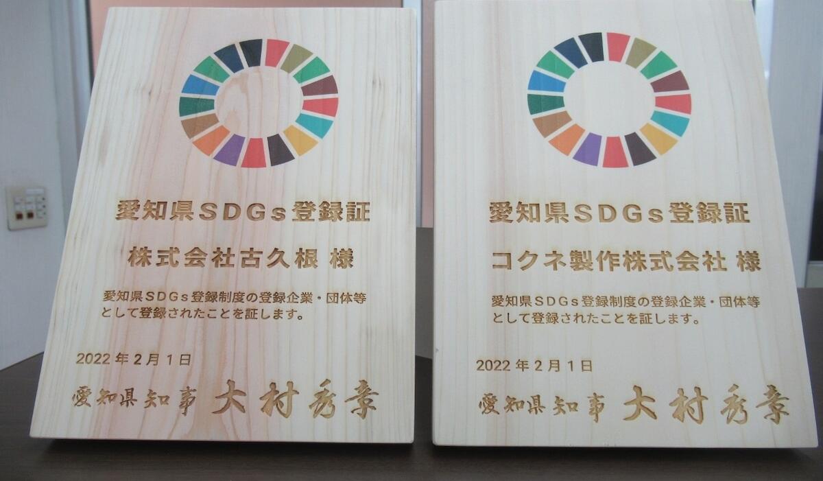 (株)古久根、コクネ製作(株)両社が『愛知県SDGs登録制度』に登録されました