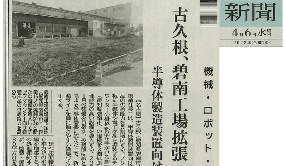 (株)古久根が日刊工業新聞に掲載されました!